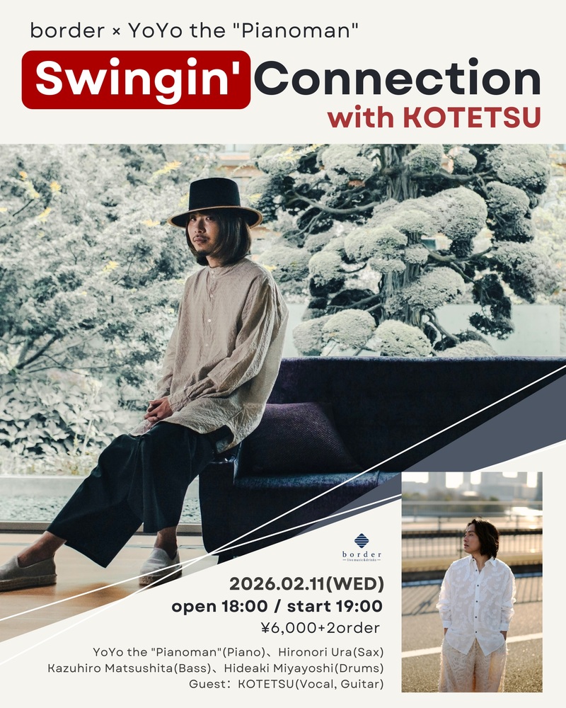 2026年2月11日(水・祝)開催決定!YoYo the "Pianoman" × border ライブ企画『Swingin’ Connection』ゲストにKOTETSU(Vocal) 出演決定!!