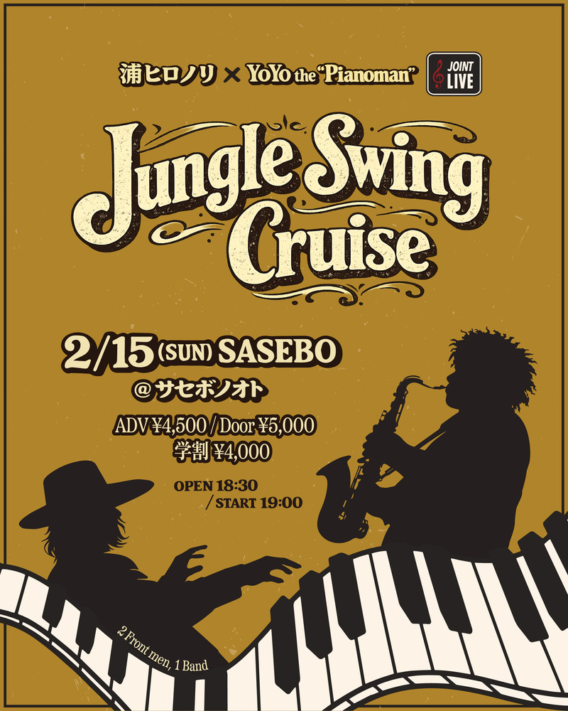 2/15(日)長崎・佐世保にて、浦ヒロノリ × YoYo the "Pianoman" Joint Live『Jungle Swing Cruise』開催決定!!